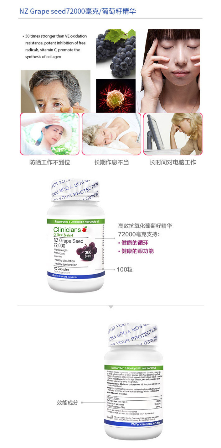 【最划算】Clinicians 科立纯 葡萄籽精华 72000 100粒 保质期至18.07
