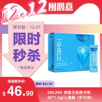 • 【限时秒杀】ENCARE 球蛋白免疫冲剂 40*1.5g(儿童版 1岁可用) 参考效期26.04 NZ46.99 查看大图 商品对比