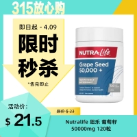 【限时秒杀】Nutralife 纽乐 葡萄籽50000mg 120粒 参考效期27.02 | NZ21.50 | 查看大图 | 商品对比 | 加入购物车 查看详细 |