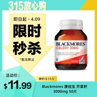 【限时秒杀】Blackmores 澳佳宝 芹菜籽 3000mg 50片 参考效期27.03 | NZ11.99 | 查看大图 | 商品对比 | 加入购物车 查看详细 |