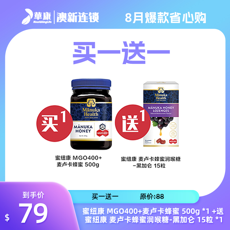 【买一送一】蜜纽康 MGO400+麦卢卡蜂蜜 500g *1 +送 蜜纽康 麦卢卡蜂蜜润喉糖-黑加仑 15粒 *1