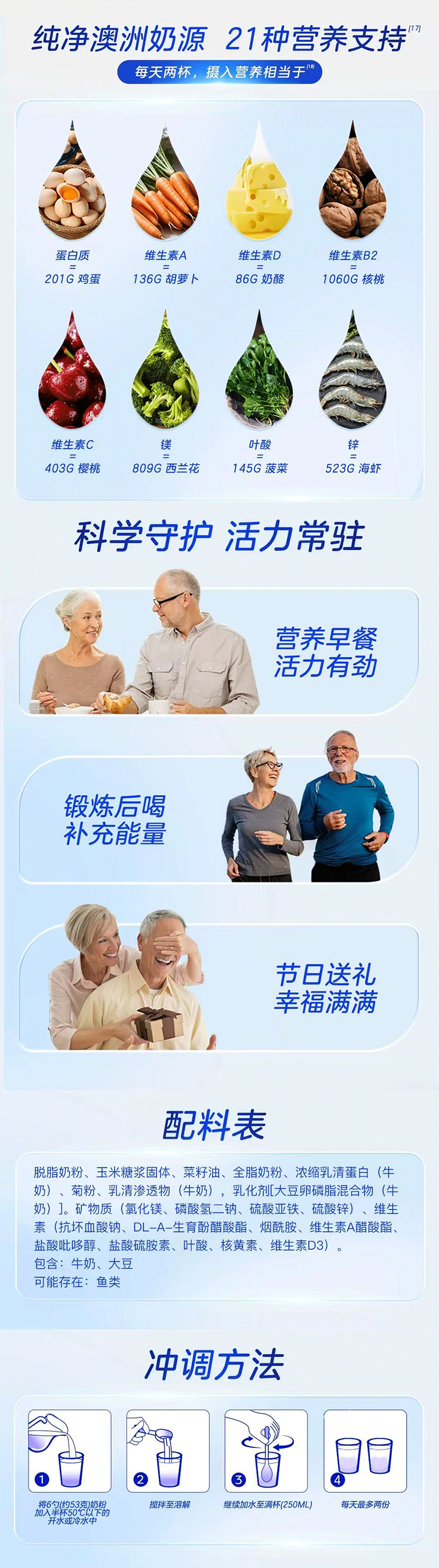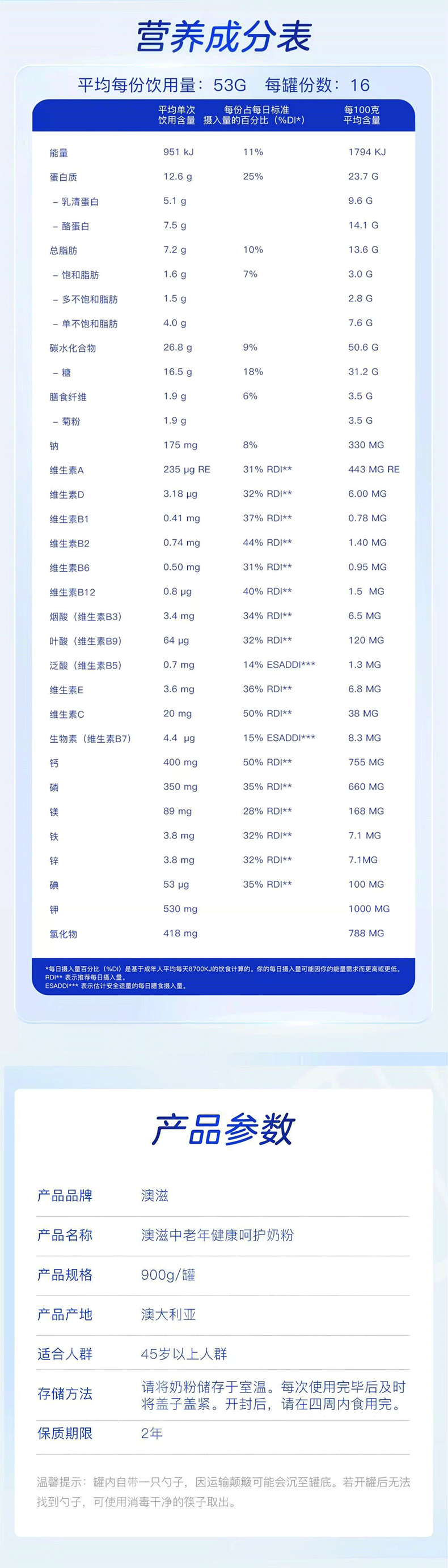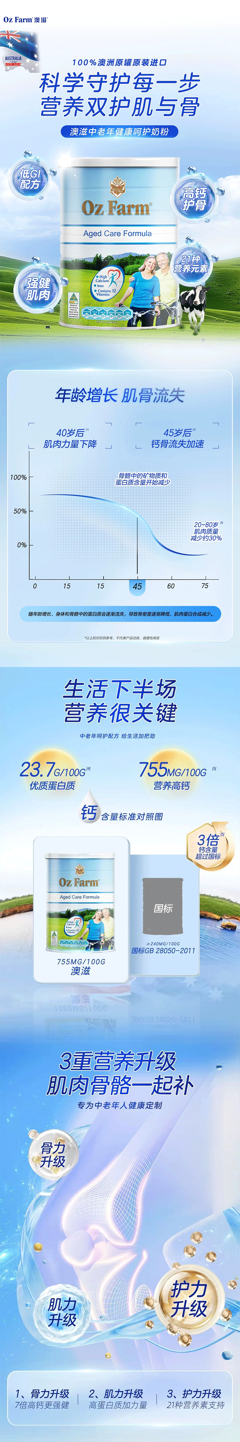 【澳洲直邮包邮】OzFarm 澳美滋 中老年人牛奶粉 900g *2罐  参考日期27.04
