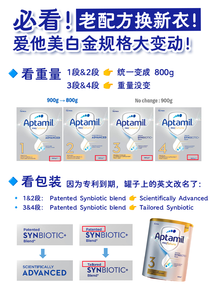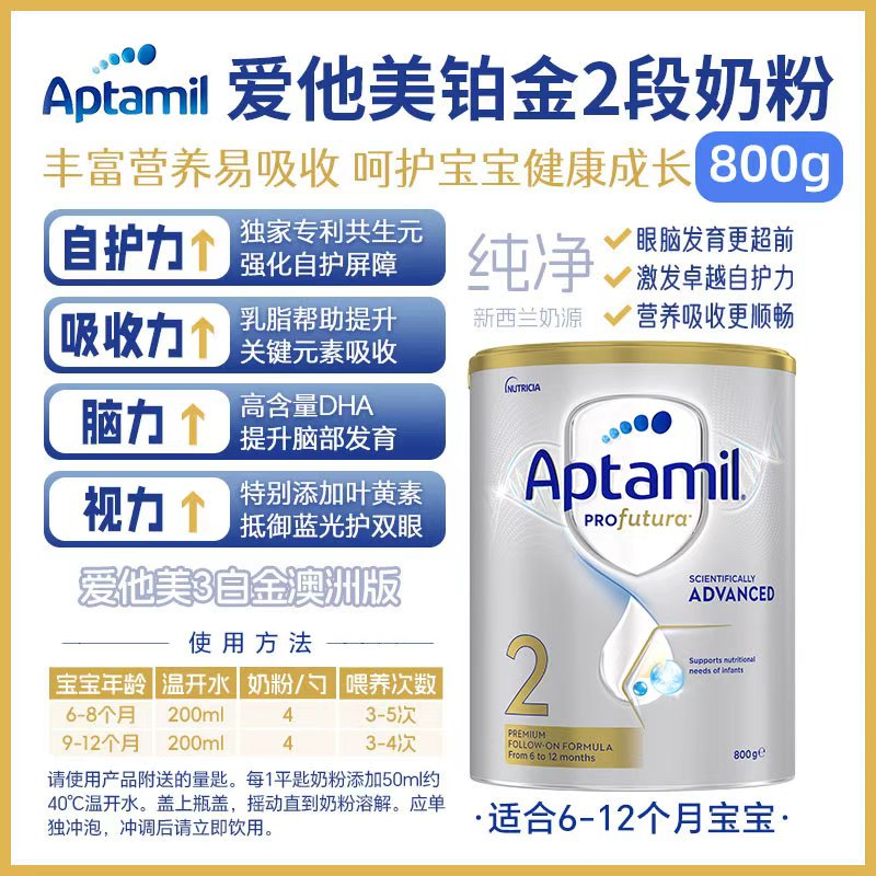 【新西兰直邮包邮-顺丰2周达】Aptamil 爱他美白金 2段 800g 新版 *3罐 参考效期2027年12月