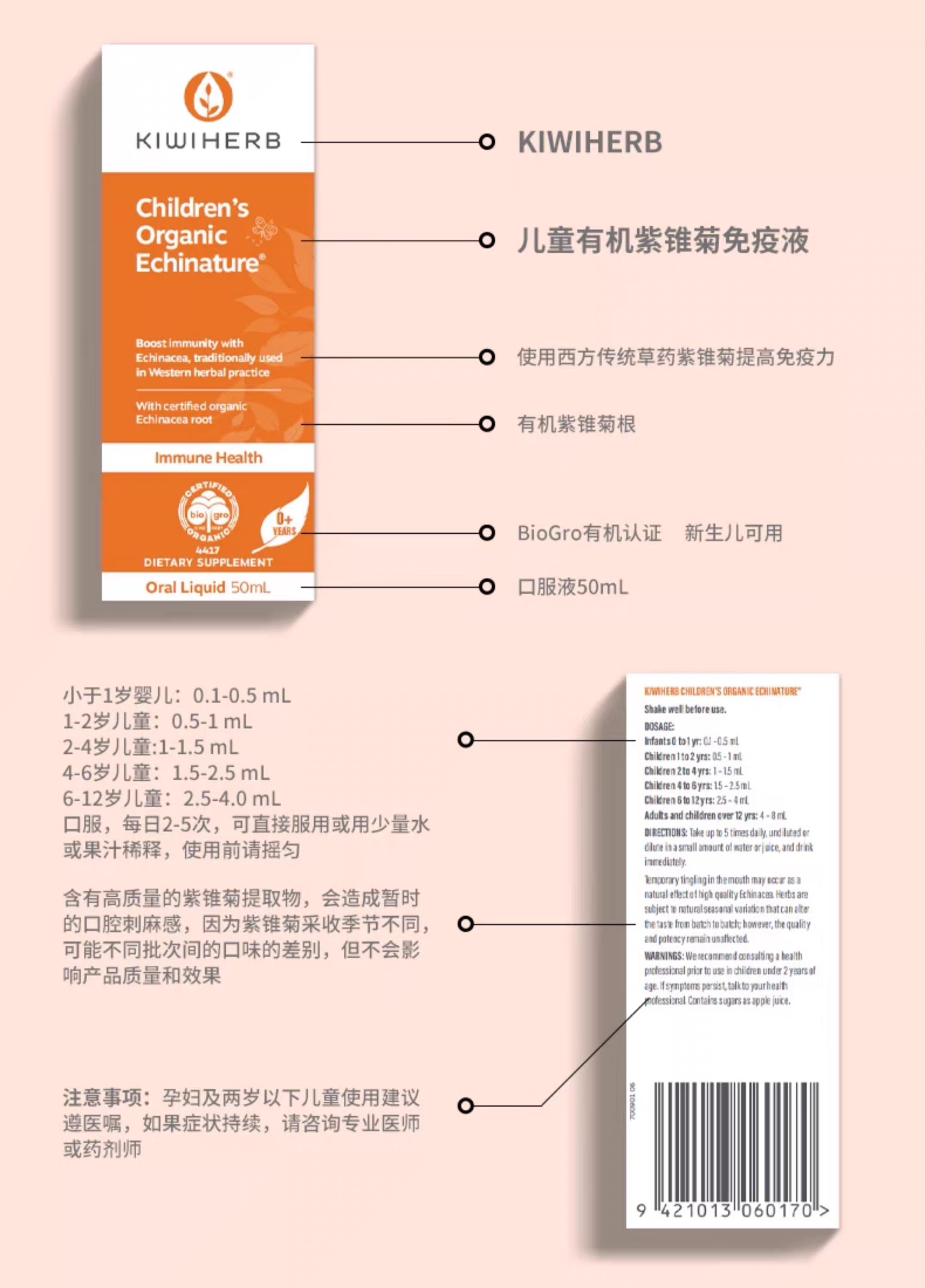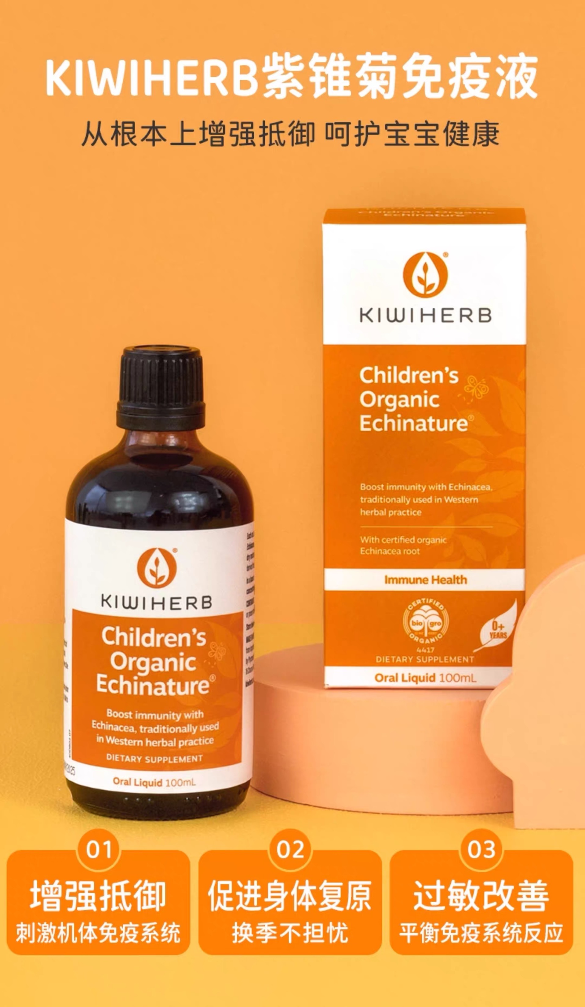 Kiwiherb 有机紫锥菊 儿童增强抵抗力糖浆100ml 参考效期27.09