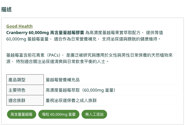 Good health 好健康 高含量蔓越莓60000mg 50粒 参考效期28.08