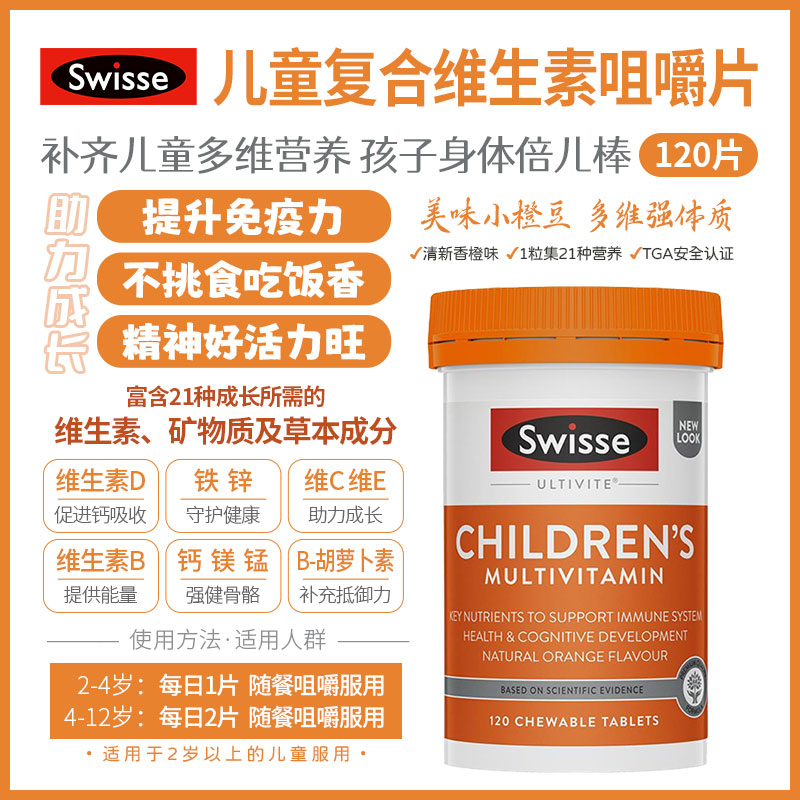【澳洲直邮】Swisse 儿童复合维生素咀嚼片 120片 参考效期27.10