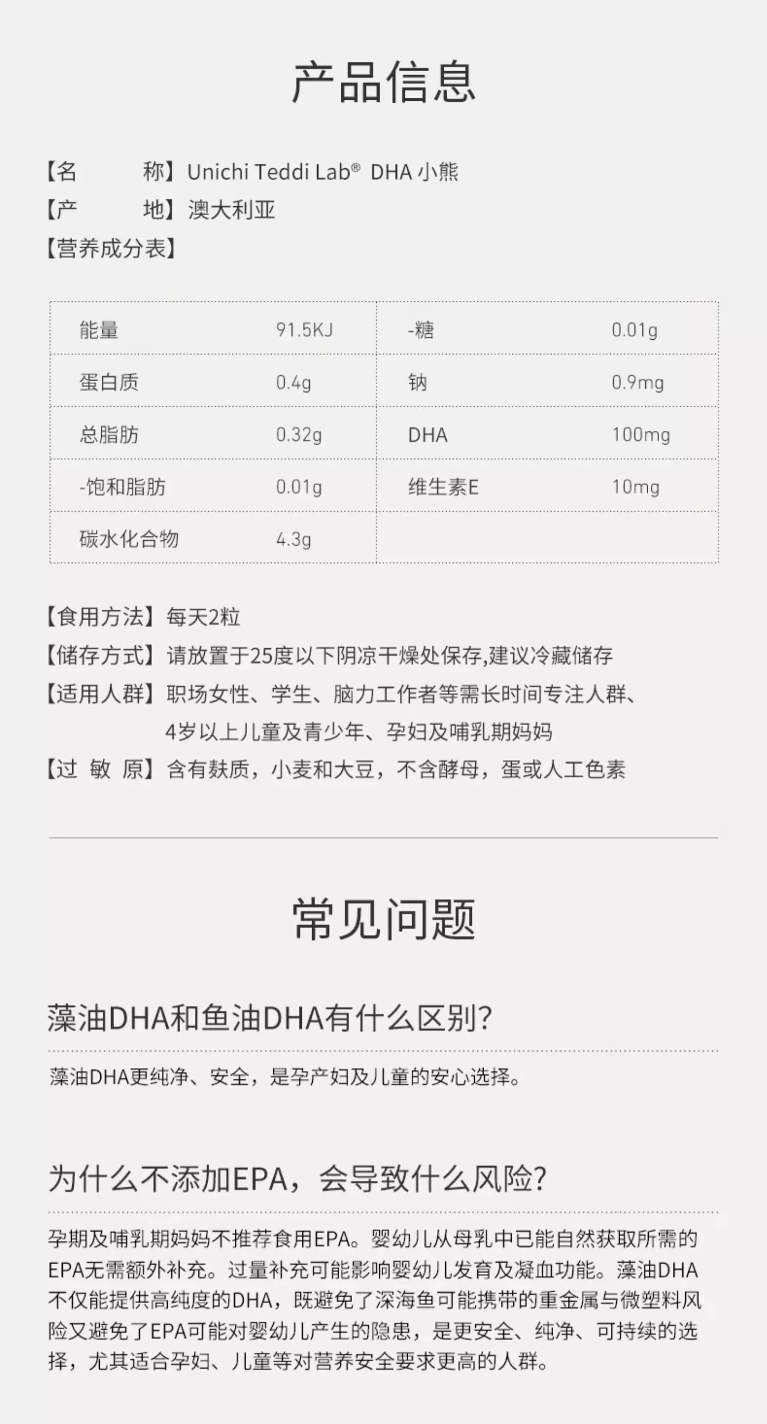 【澳洲直邮】Unichi DHA小熊软糖60粒 参考效期28.09