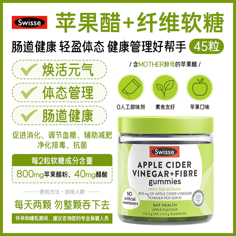 【澳洲直邮】Swisse 苹果醋软糖 45粒 参考效期27.04