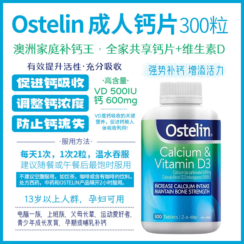 【澳洲直邮】Ostelin 成人钙片 300粒 参考效期28.04