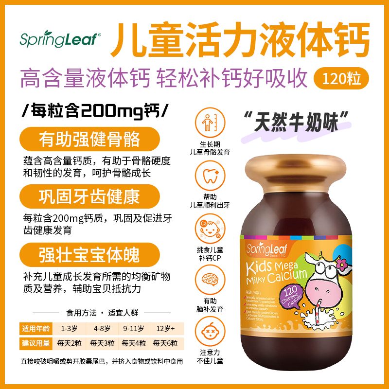 【澳洲直邮】Spring Leaf 绿芙 儿童液体钙 120粒  参考效期28.03