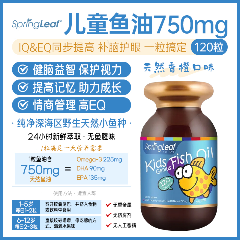 【澳洲直邮】Spring Leaf 绿芙 儿童鱼油(750mg) 120粒 参考效期28.08