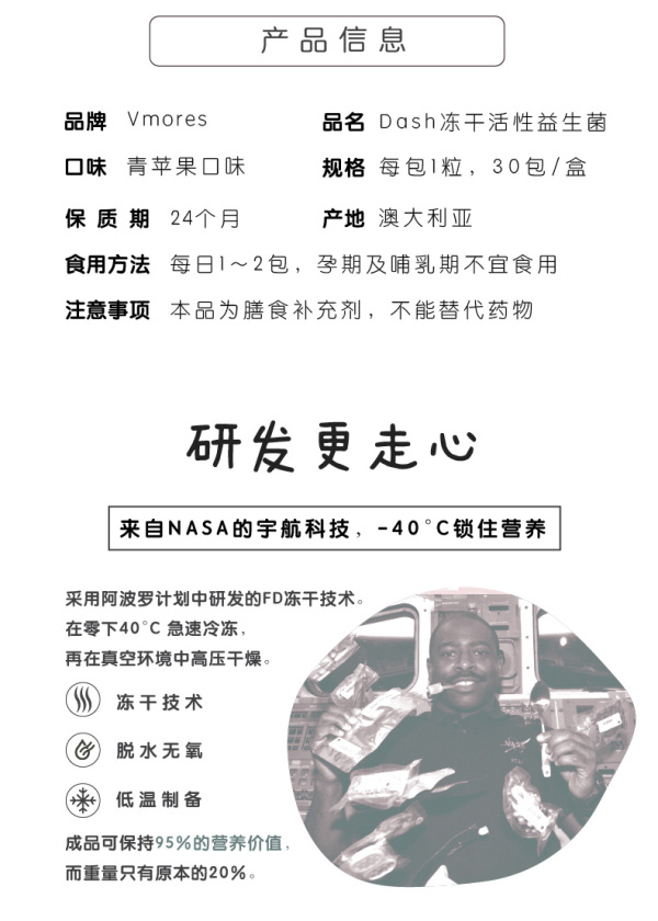 【香港仓特价包邮】【新剂型】Vmores 150亿活性益生菌冻干瘦子菌 60g/30包